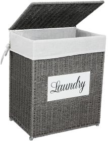 Laundry Hamper with Lid Laundry Basket with Handles Liner Bag Paper Woven Hampers for Laundry Clothes Storage Basket for Bedroom Bathroom (Grey)