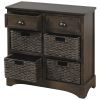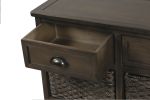 TREXM Rustic Storage Cabinet with Two Drawers and Four Classic Rattan Basket for Dining Room/Living Room (Brown Gray)